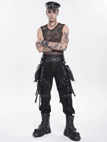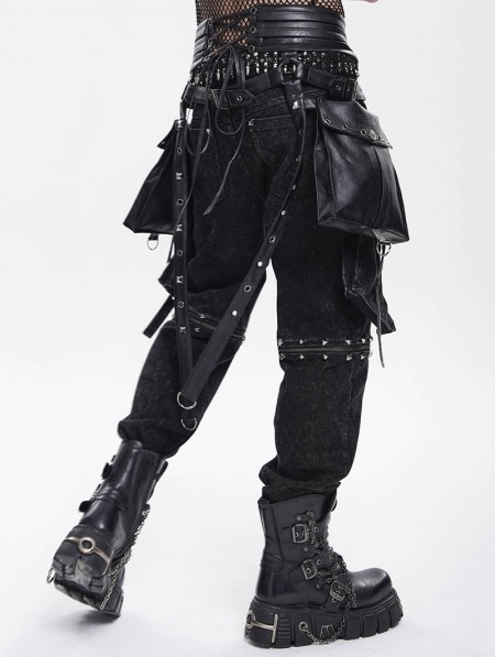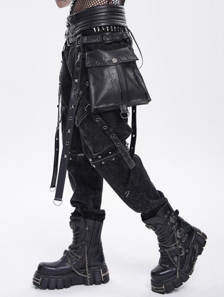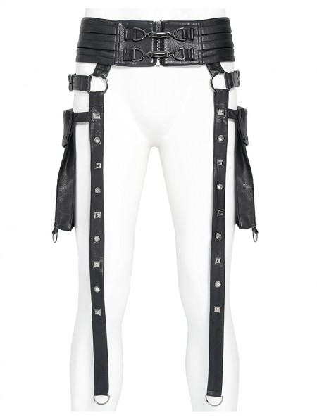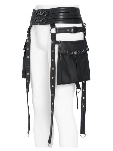 Devil Fashion Black Gothic Punk Studded Strap Leather Belt with Bag