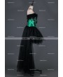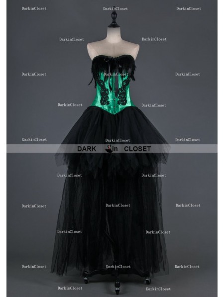 Black and Green Feather Gothic Burlesque Corset High-Low Prom Party Dress