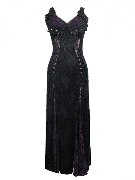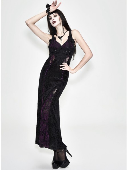 Eva Lady Black and Purple Sexy Gothic Lace Maxi Formal Dress