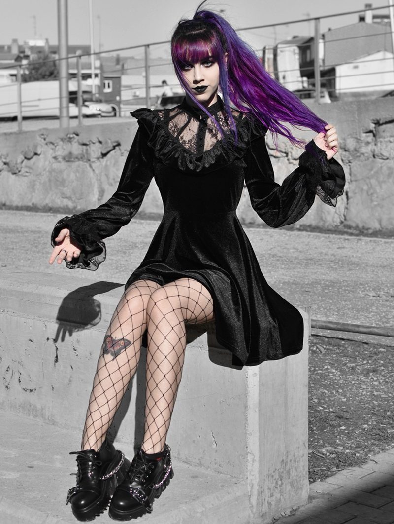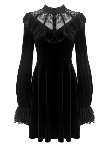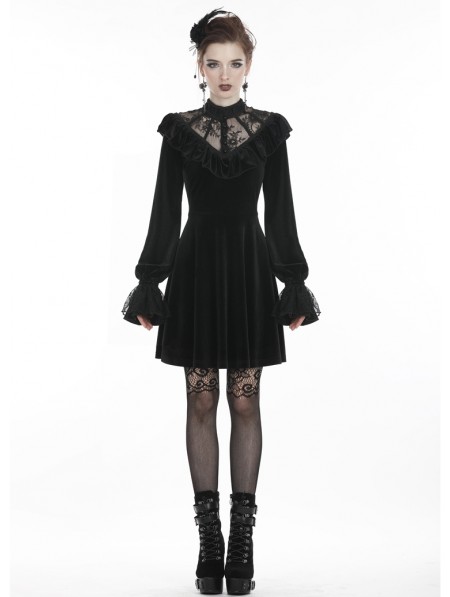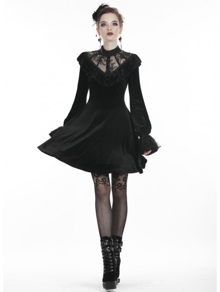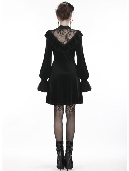 Dark in Love Black Gothic Lolita Long Sleeve Velvet Short Dress