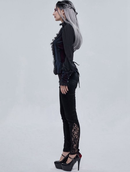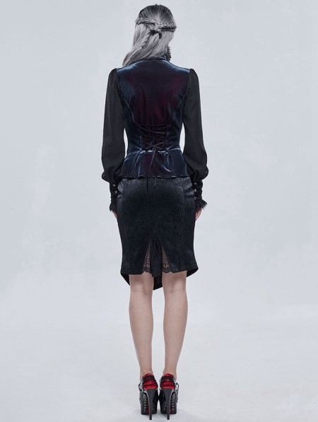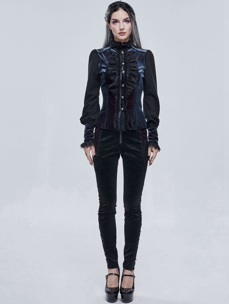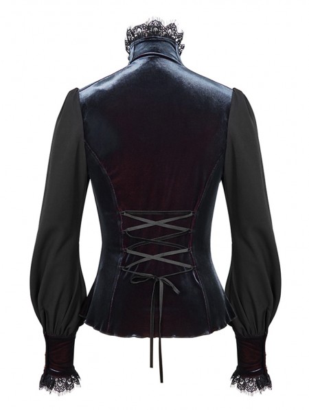 Devil Fashion Blue Retro Gothic Velvet Long Sleeve Blouse for Women