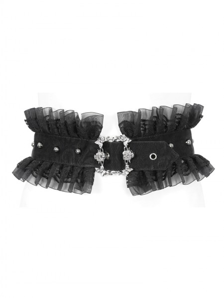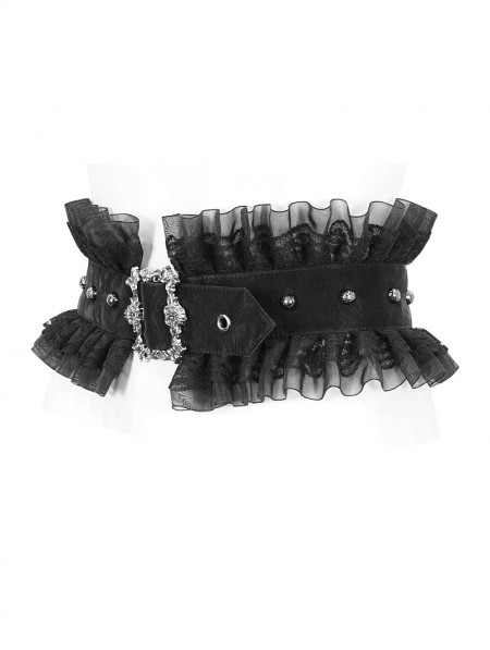 Devil Fashion Black Gothic Buckle Ruffled Lace Girdle for Women