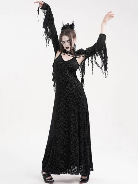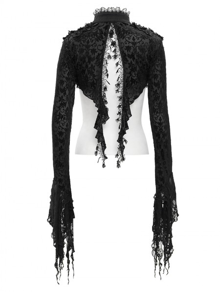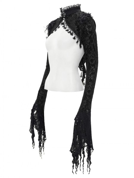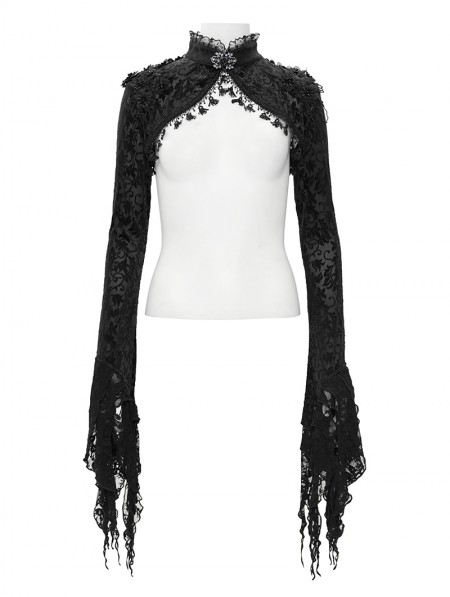 Eva Lady Black Gothic Retro Lace Embossed Velvet Shrug Cape for Women