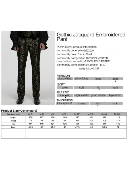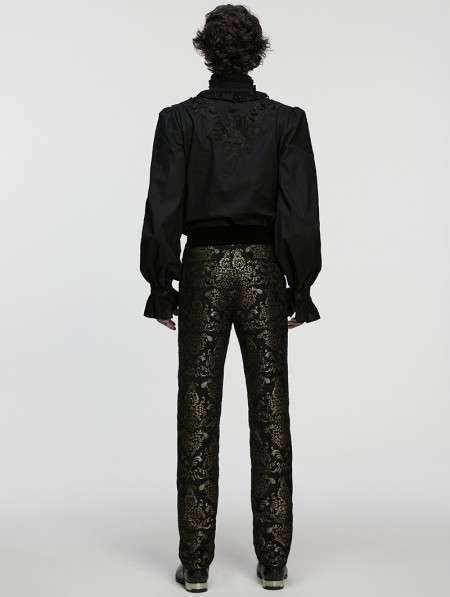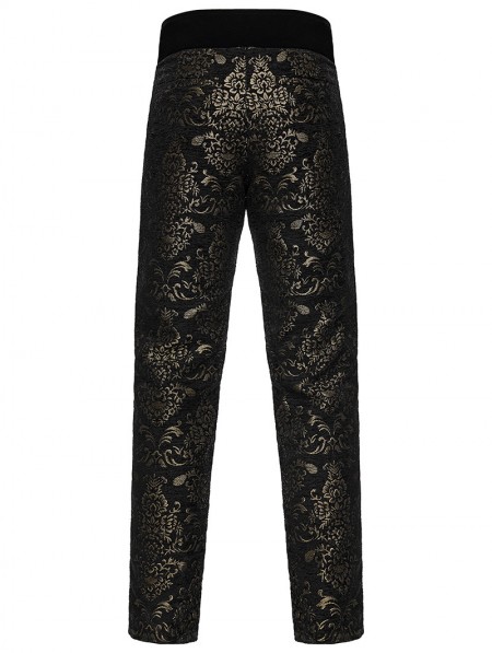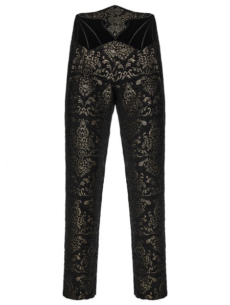Punk Rave Black and Gold Retro Gothic Jacquard Embroidered Party Pants for Men