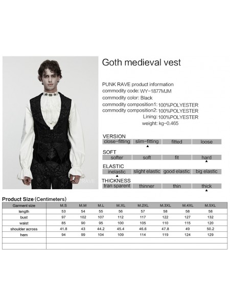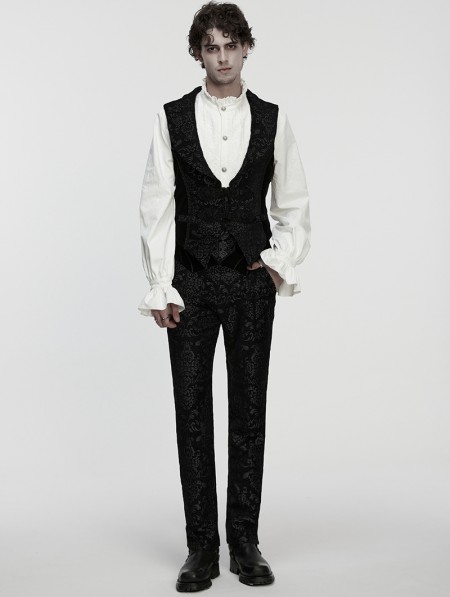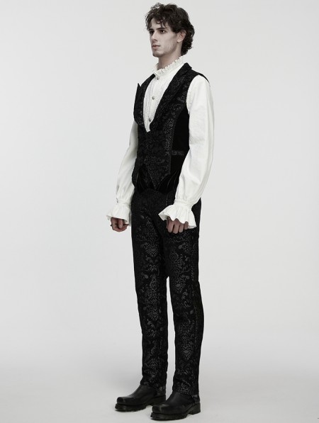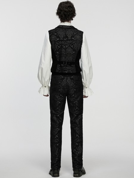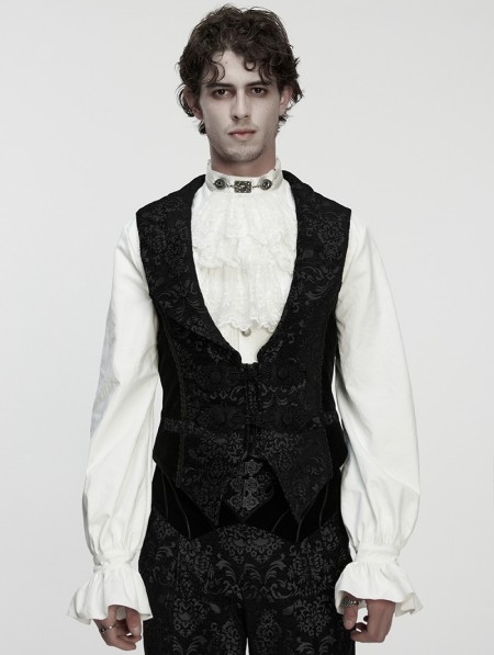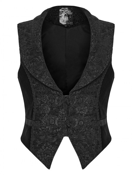 Punk Rave Black Gothic Medieval Pattern Lapel Vest for Men