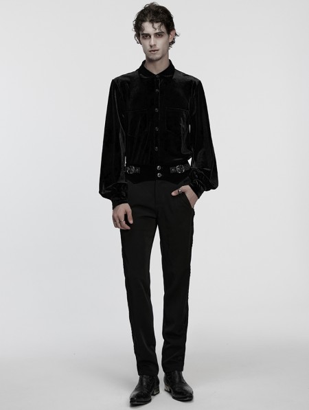 Punk Rave Black Daily Gothic Velvet Button Up Shirt for Men