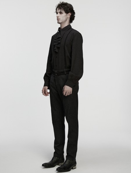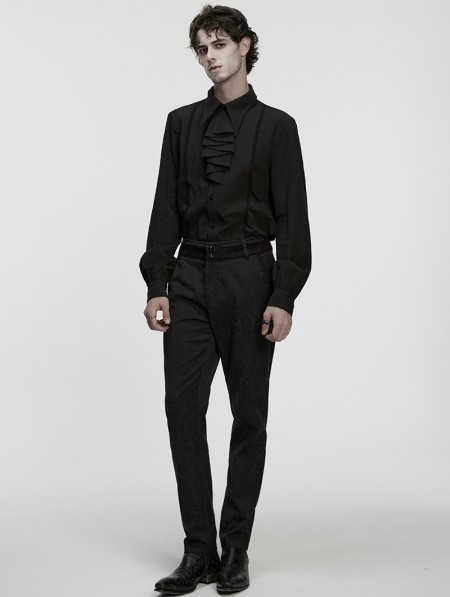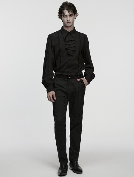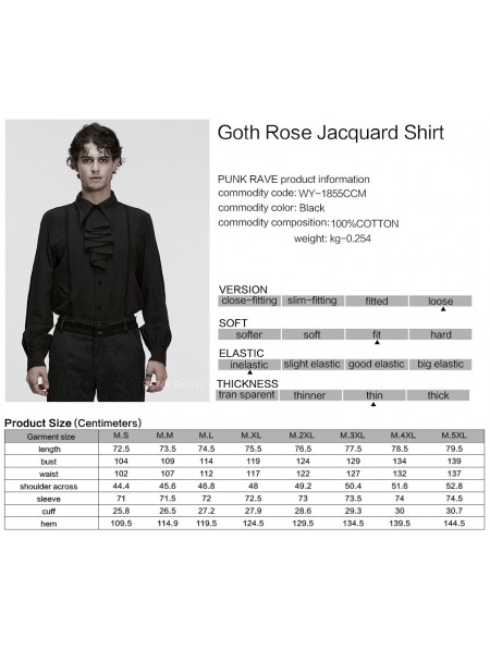 Punk Rave Black Gothic Rose Jacquard Men's Shirt with Detachable Collar
