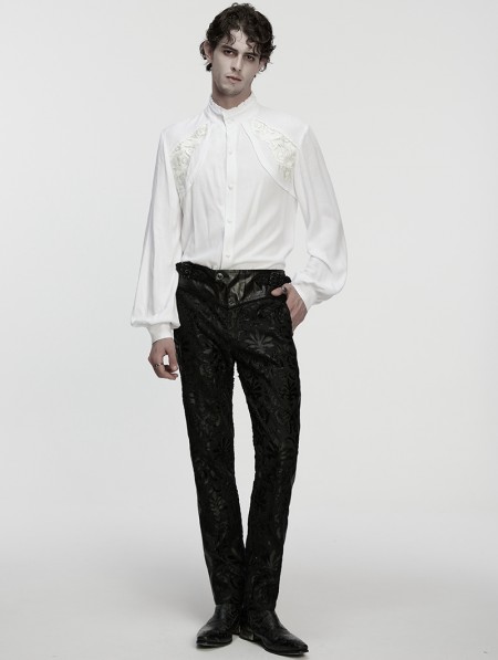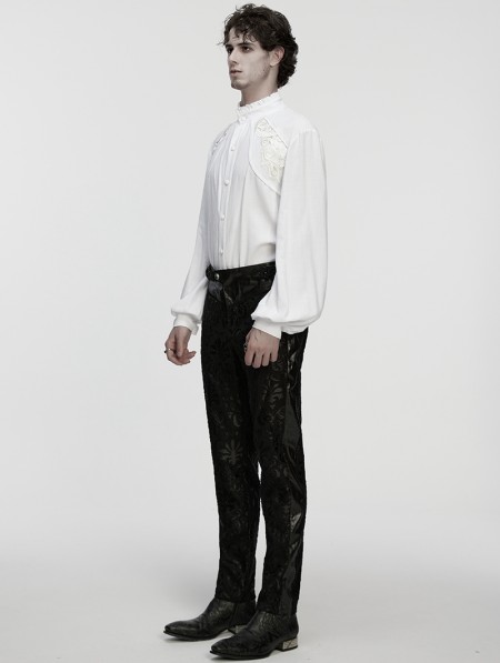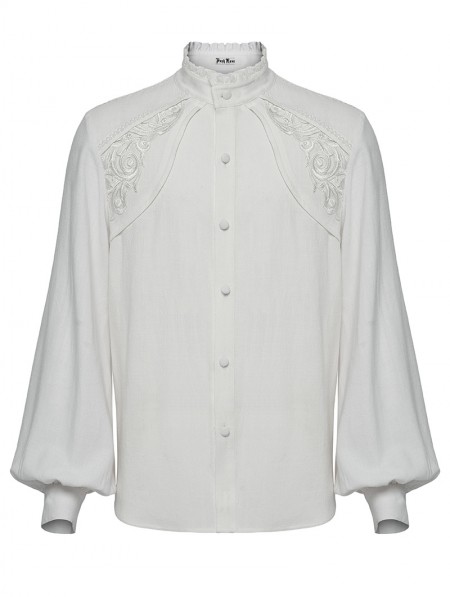Punk Rave White Retro Gothic Lace Applique Lantern Sleeves Shirt for Men