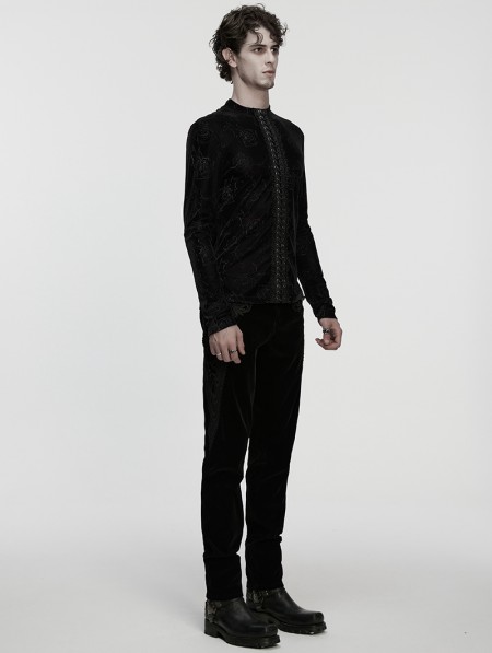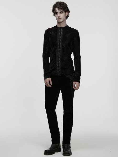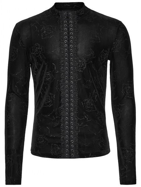 Punk Rave Black Gothic Rose Embossed Lace-Up T-Shirt for Men