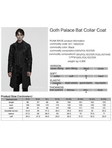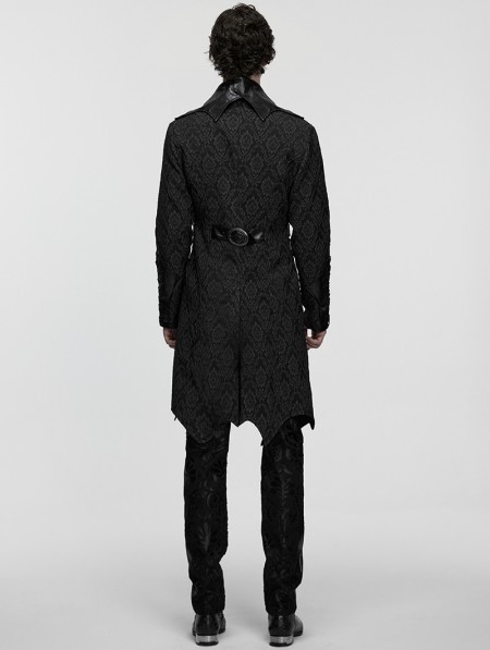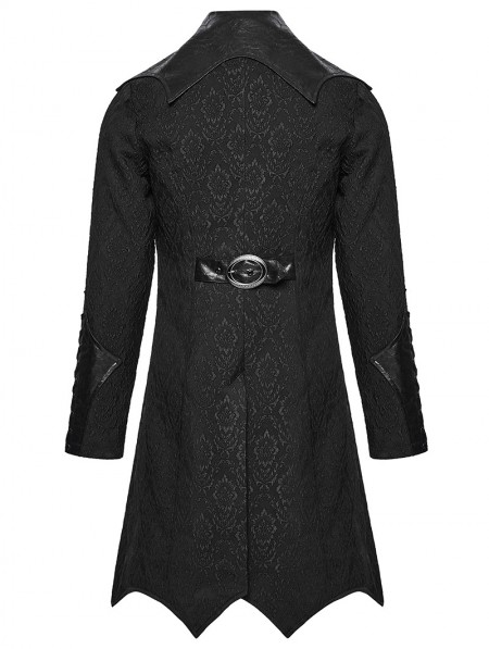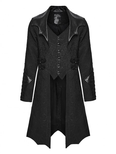 Punk Rave Black Gothic Palace Jacquard Bat Lapel Collar Tail Coat for Men