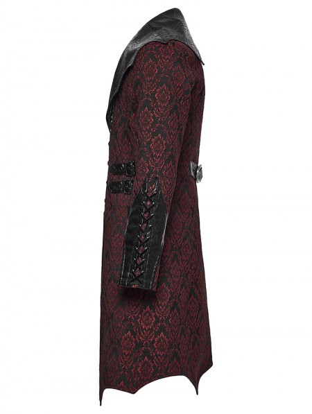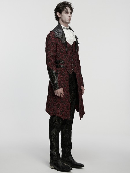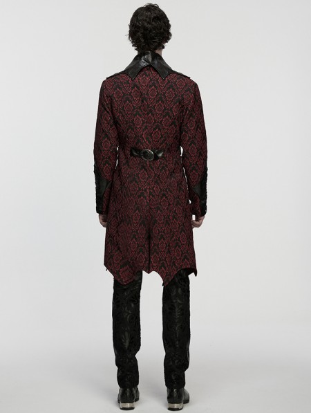 Punk Rave Red Gothic Palace Jacquard Bat Lapel Collar Tail Coat for Men