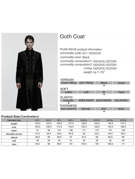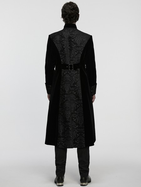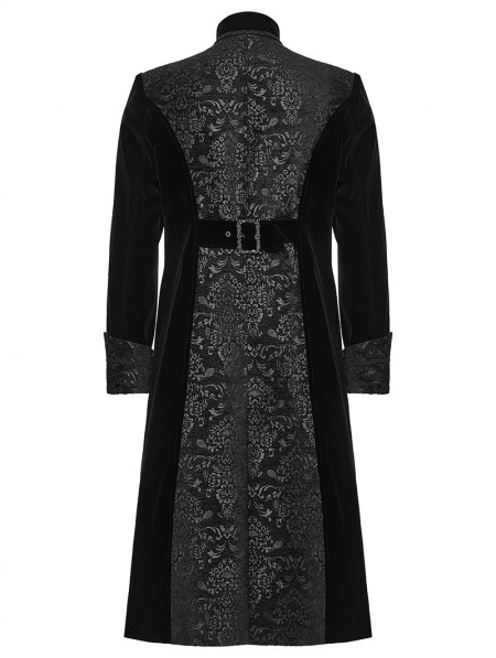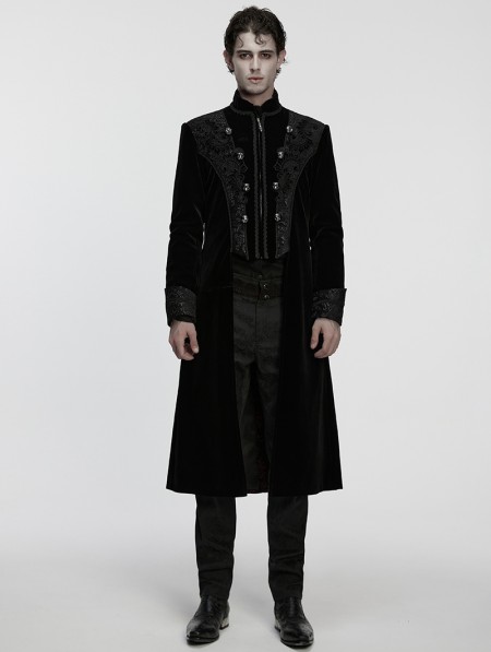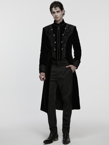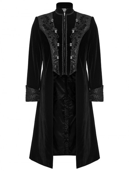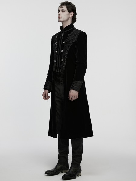 Punk Rave Black Gothic Palace Embroidery Velvet Party Coat for Men