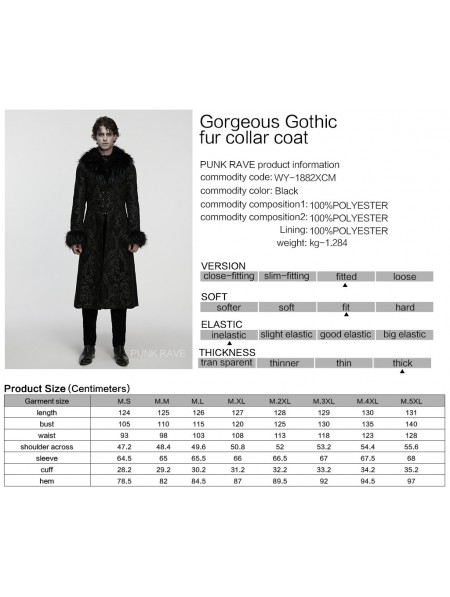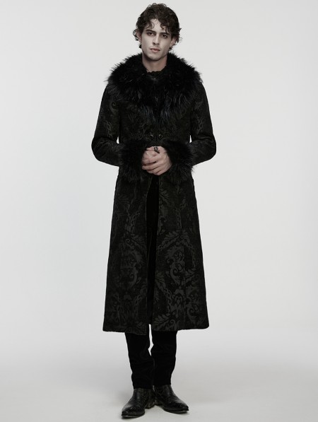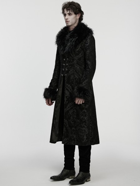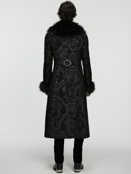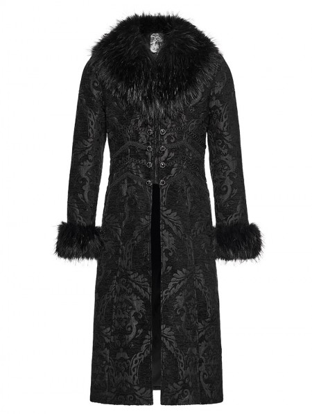 Punk Rave Black Gorgeous Jacquard Gothic Fur Collar Coat for Men