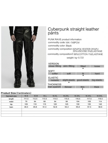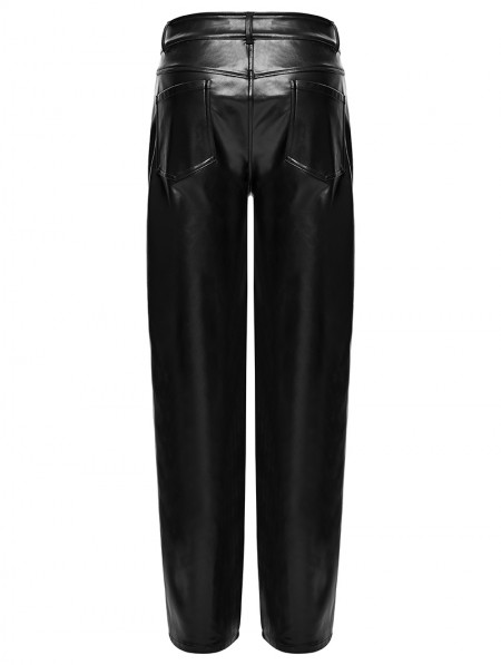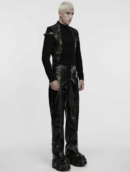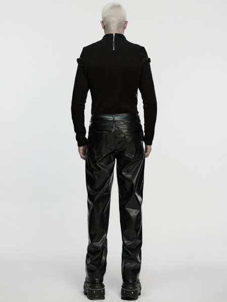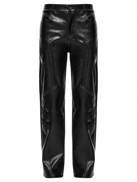 Punk Rave Black Gothic Cyberpunk Straight Leather Pants for Men