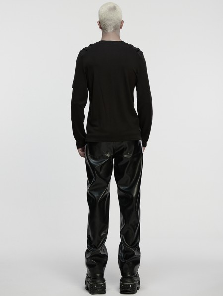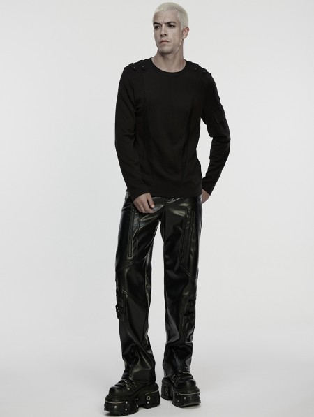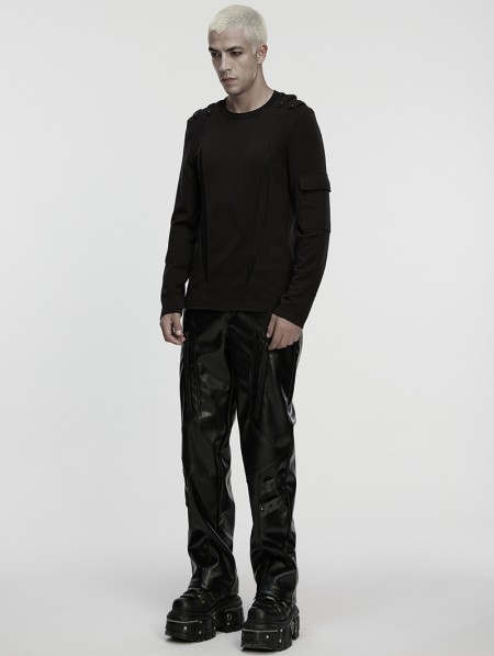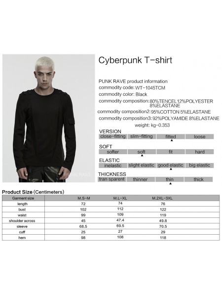 Punk Rave Black Gothic Cyberpunk Mesh Spliced T-Shirt for Men