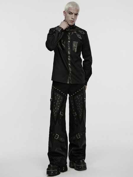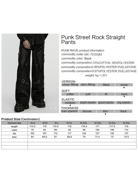 Punk Rave Black Gothic Punk Street Rock Straight Pants for Men