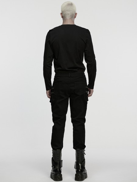 Punk Rave Black Gothic Punk Techwear Denim Pants for Men