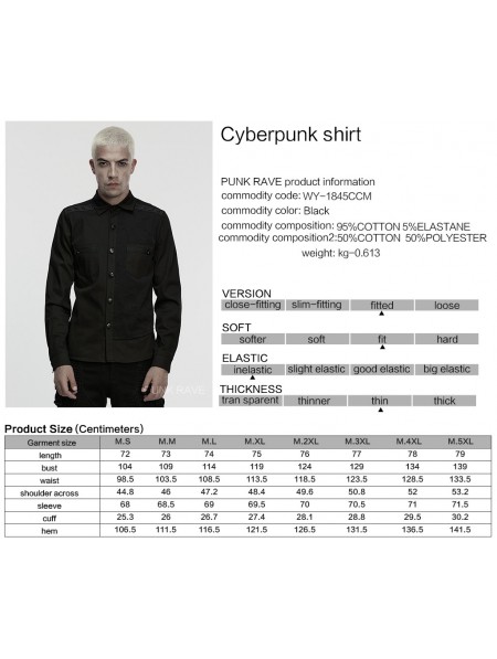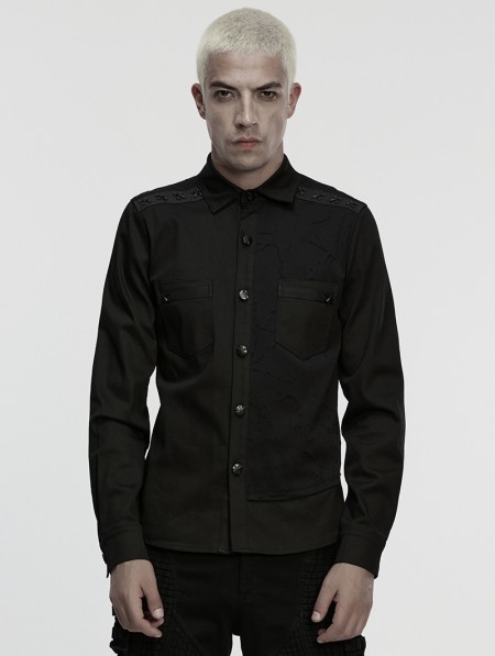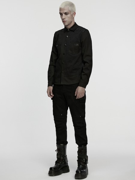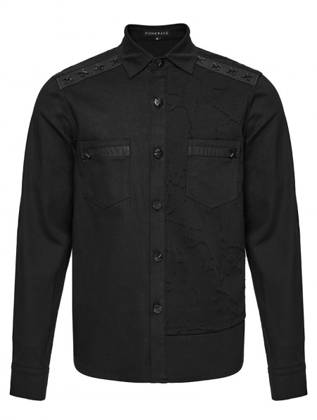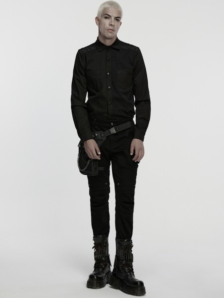Punk Rave Black Gothic Cyberpunk Studded Shirt for Men