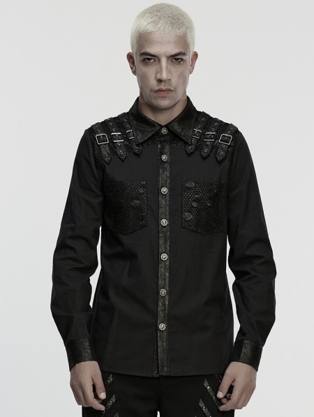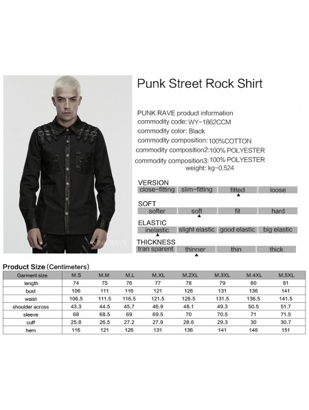 Punk Rave Black Gothic Punk Street Rock Shirt for Men