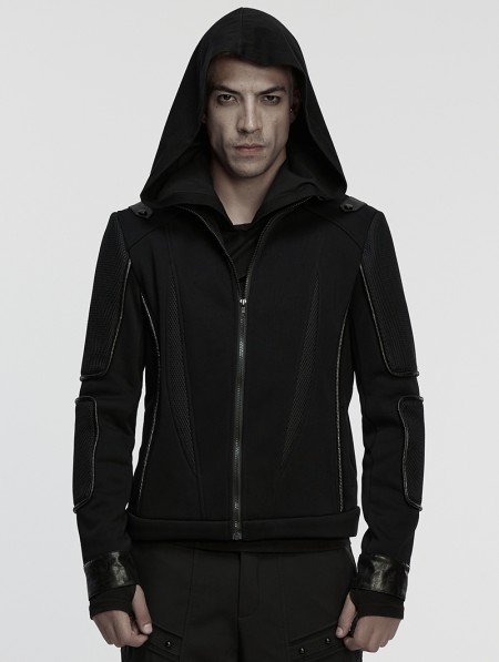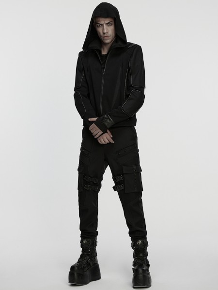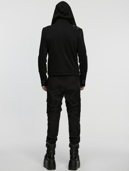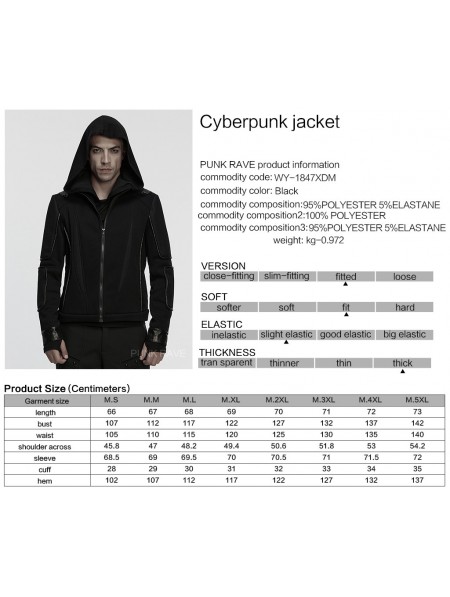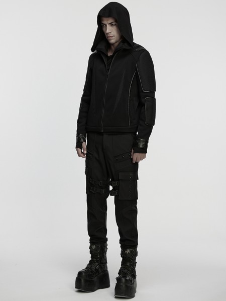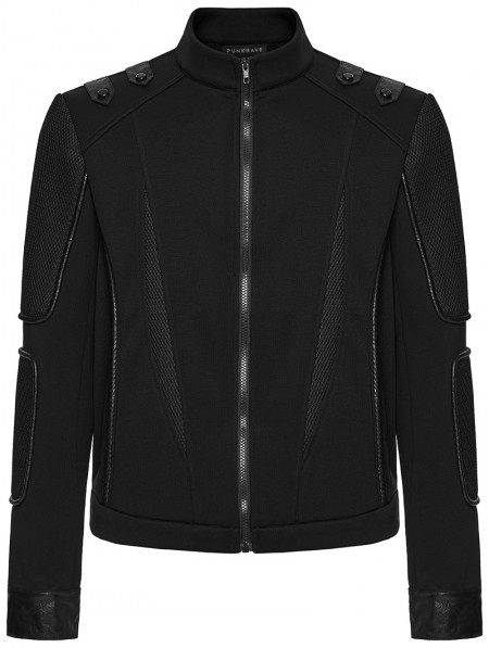 Punk Rave Black Gothic Cyberpunk Mesh Splicing Short Jacket for Men