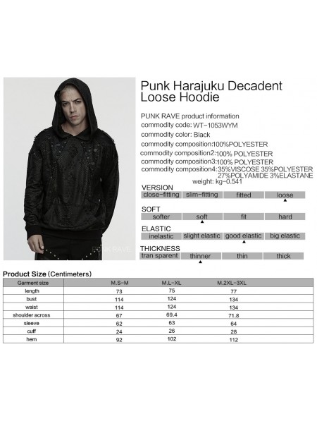 Punk Rave Black Gothic Punk Harajuku Decadent Loose Hoodie for Men
