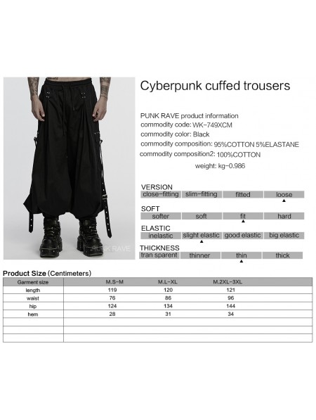 Punk Rave Black Gothic Cyberpunk Loose Cuffed Trousers for Men
