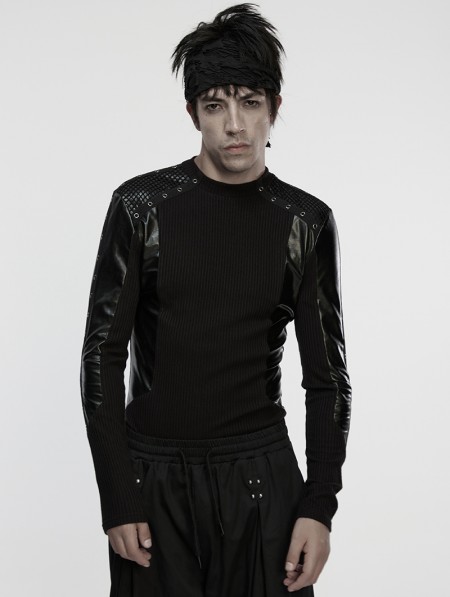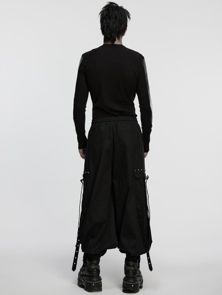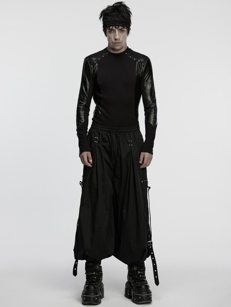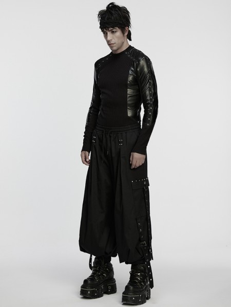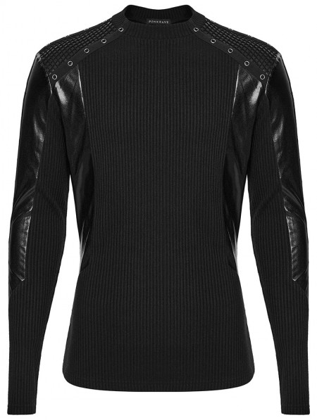 Punk Rave Black Gothic Cyberpunk Striped Long Sleeve T-Shirt for Men