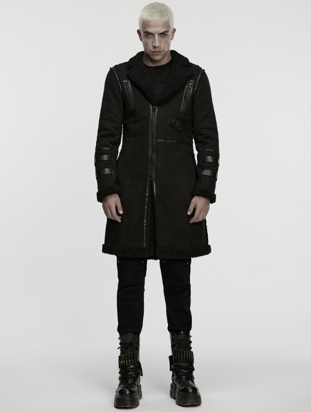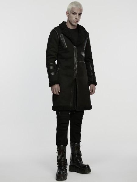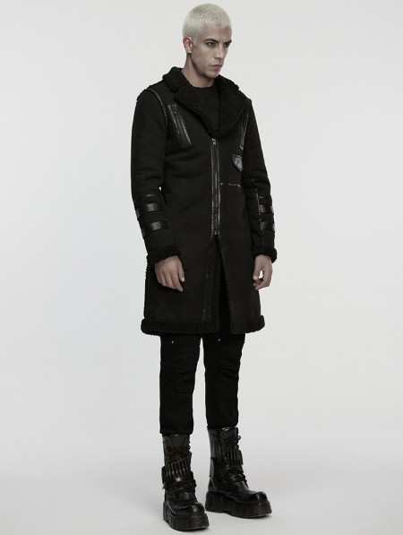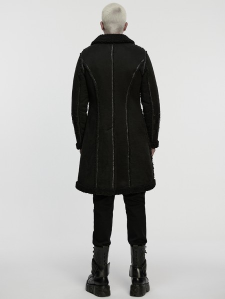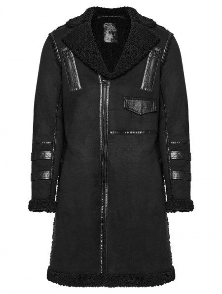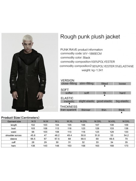Punk Rave Black Gothic Rough Punk Asymmetric Plush Jacket for Men
