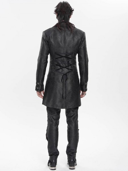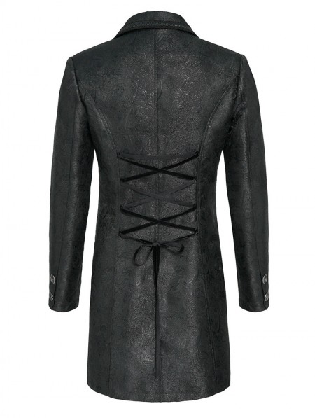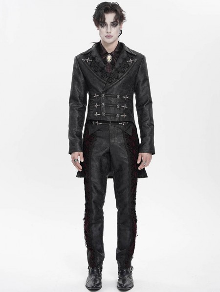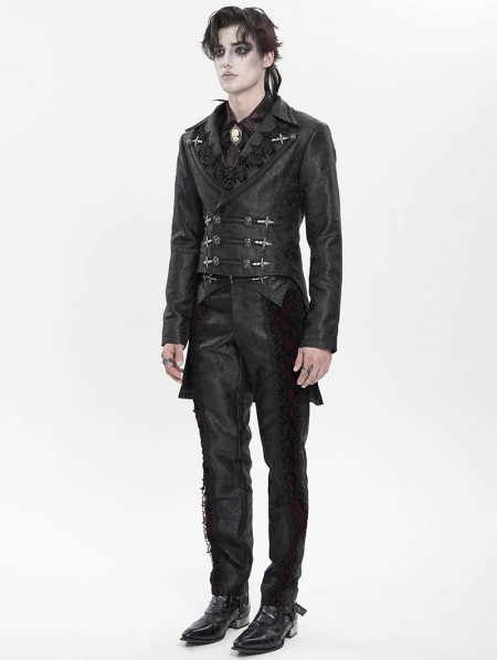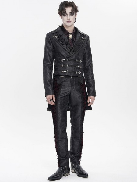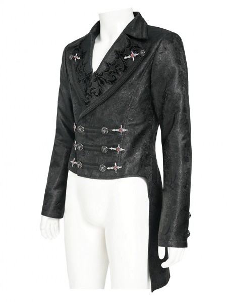 Devil Fashion Black Gothic Retro Jacquard Pattern Tailcoat for Men
