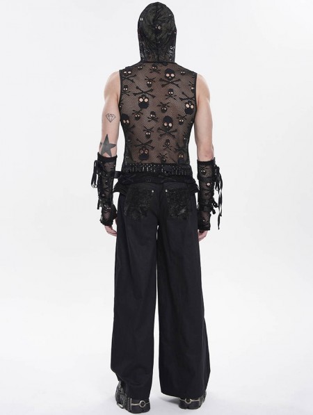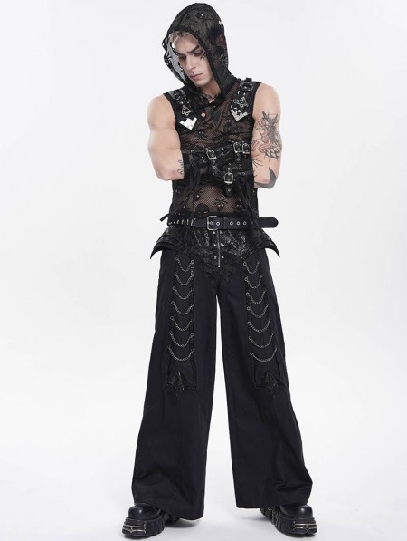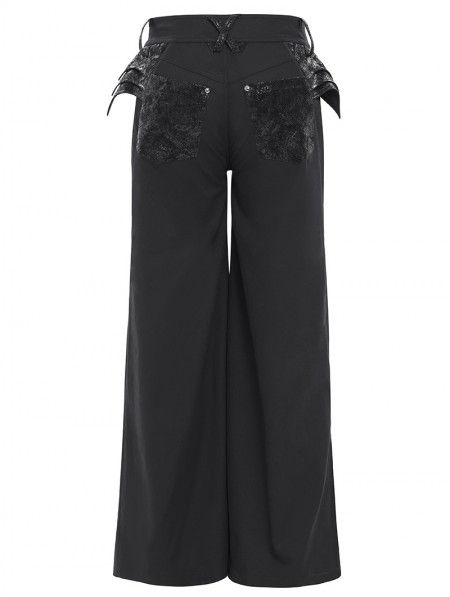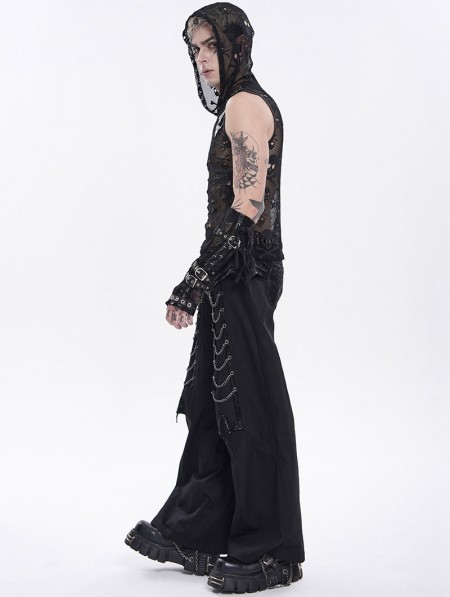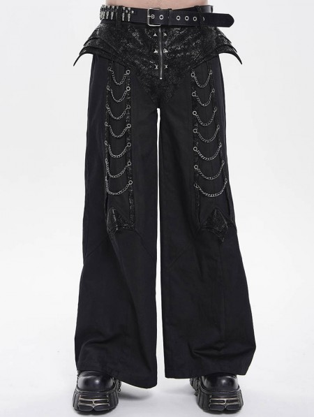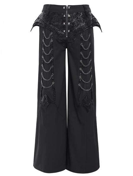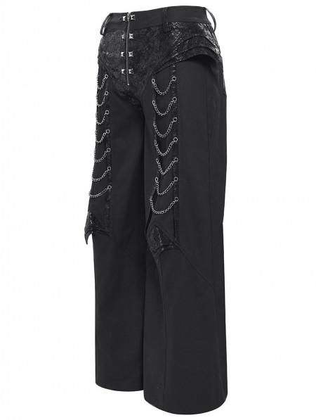 Devil Fashion Black Gothic Punk Studded Chain Wide Leg Pants for Men