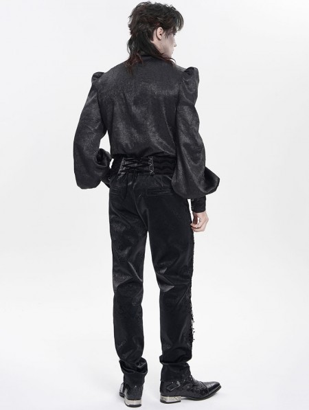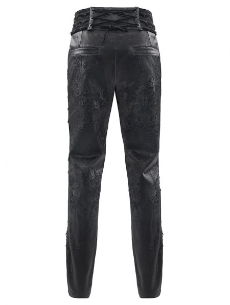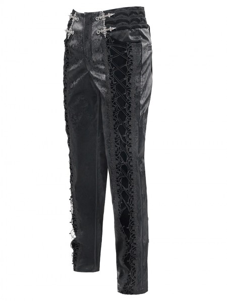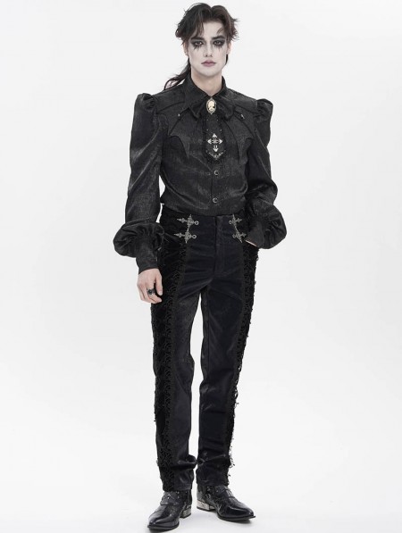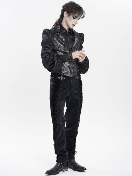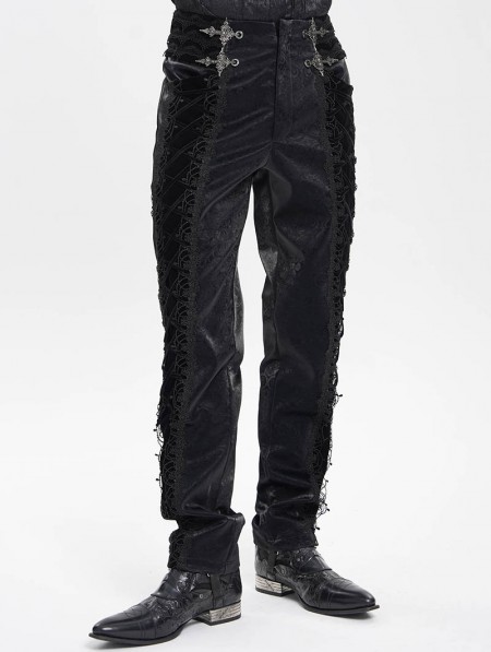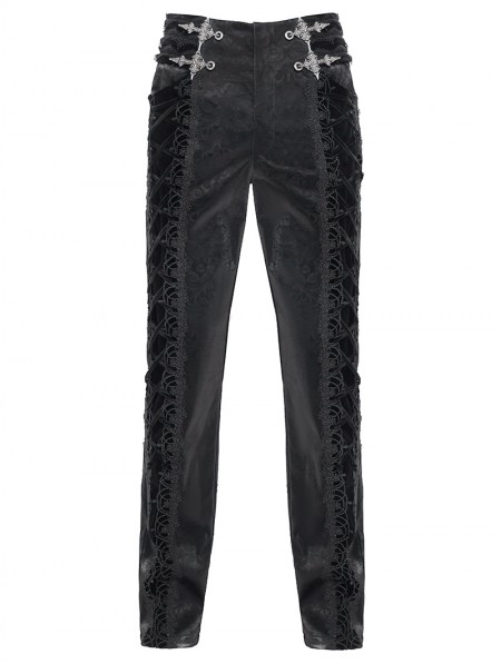 Devil Fashion Black Retro Gothic Embroidery Velvet Panel Pants for Men