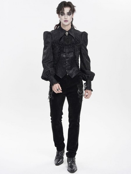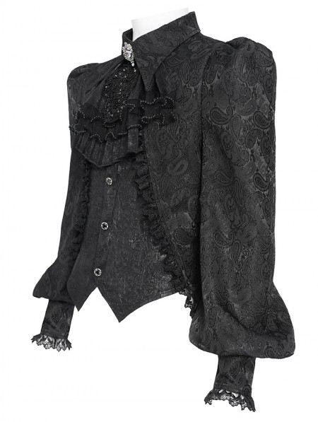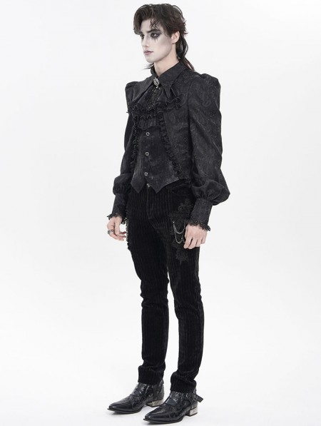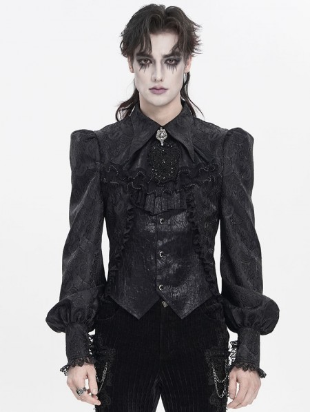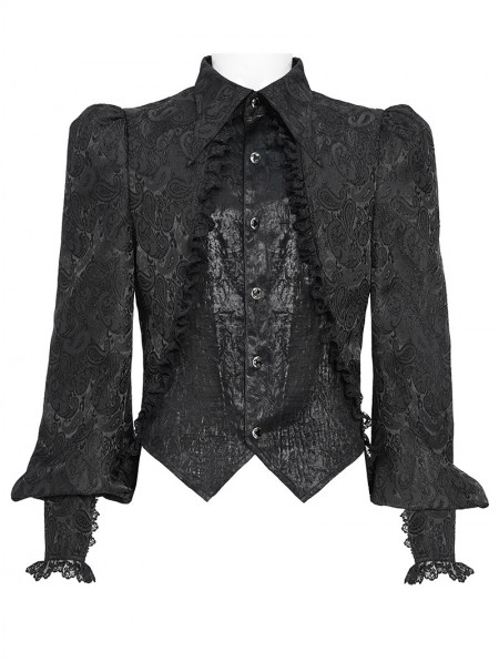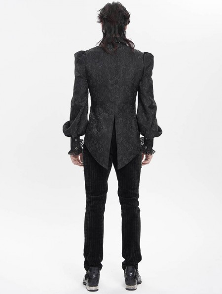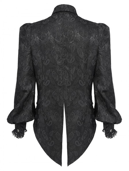 Devil Fashion Black Gothic Floral Pattern Swallow-Tailed Shirt for Men
