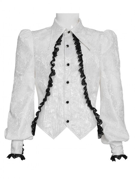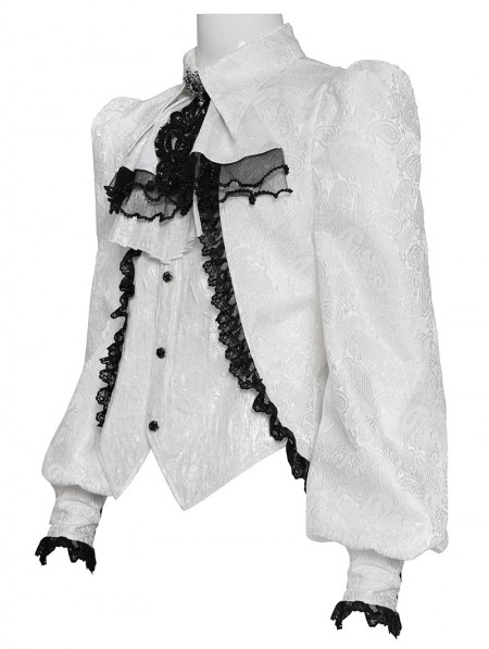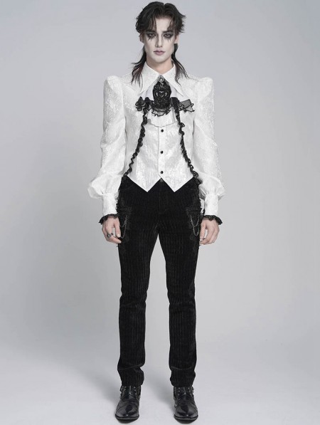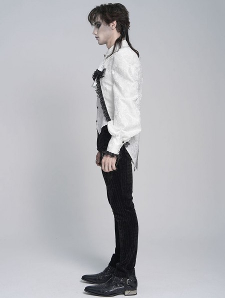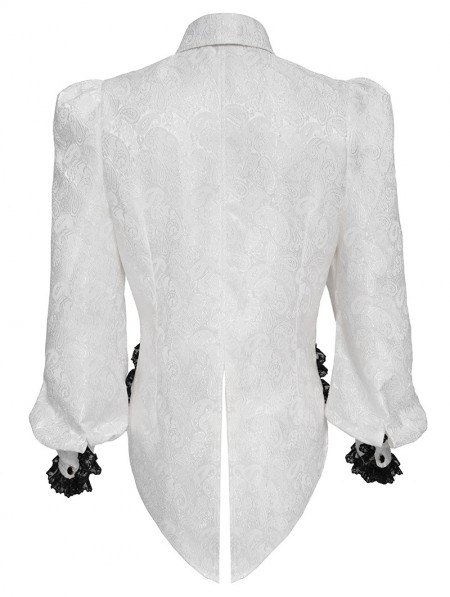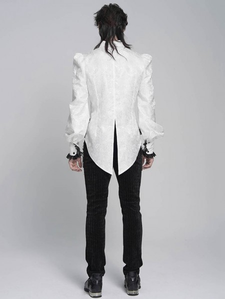 Devil Fashion White Gothic Floral Pattern Swallow-Tailed Shirt for Men