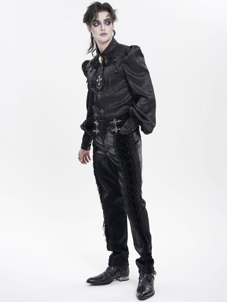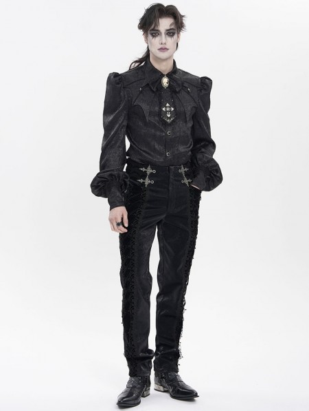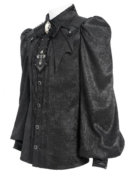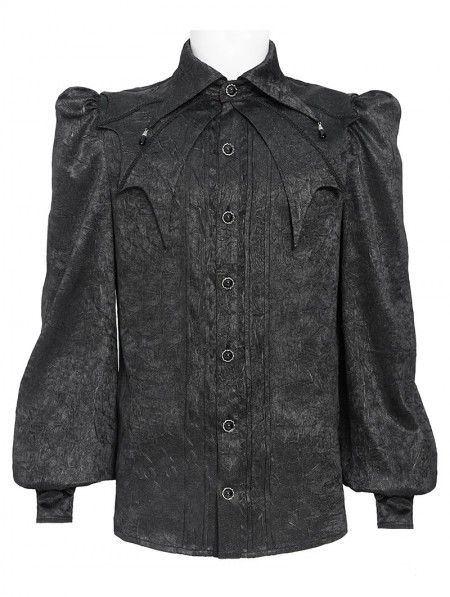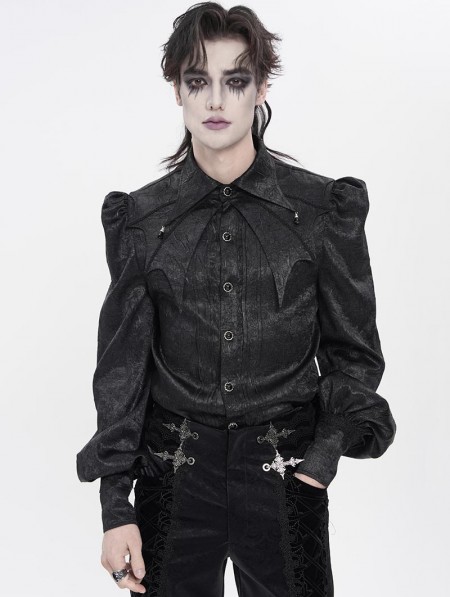Devil Fashion Black Retro Gothic Batwing Collar Button-Up Shirt for Men