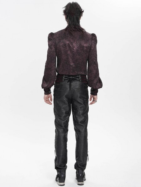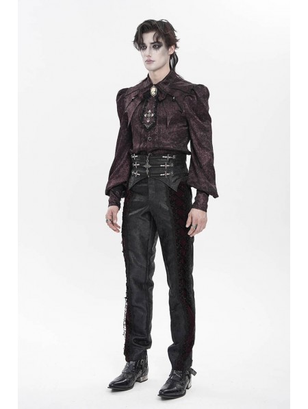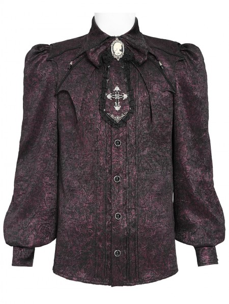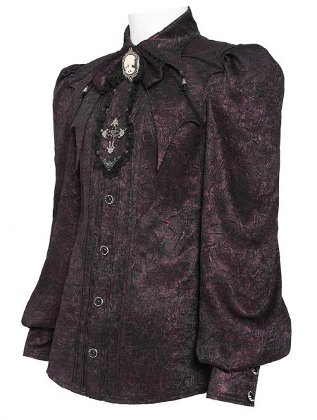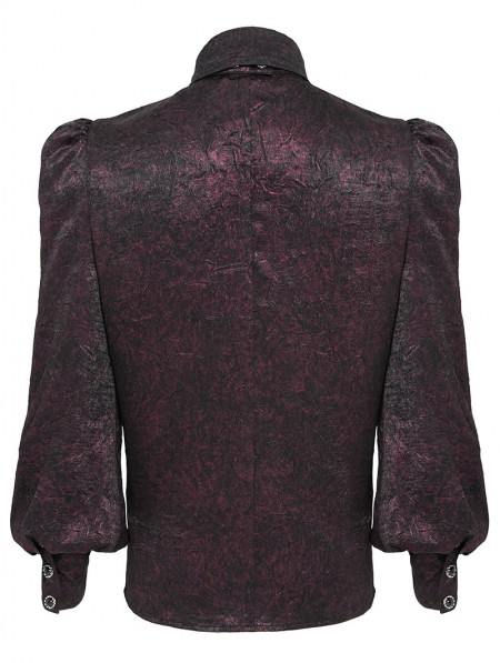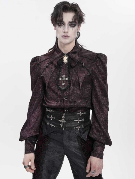 Devil Fashion Burgundy Retro Gothic Batwing Collar Button-Up Shirt for Men