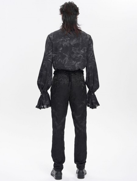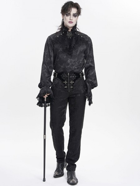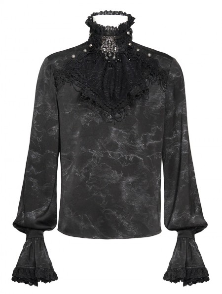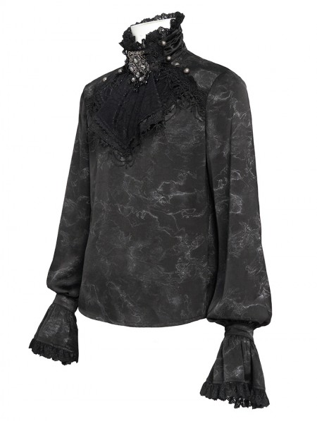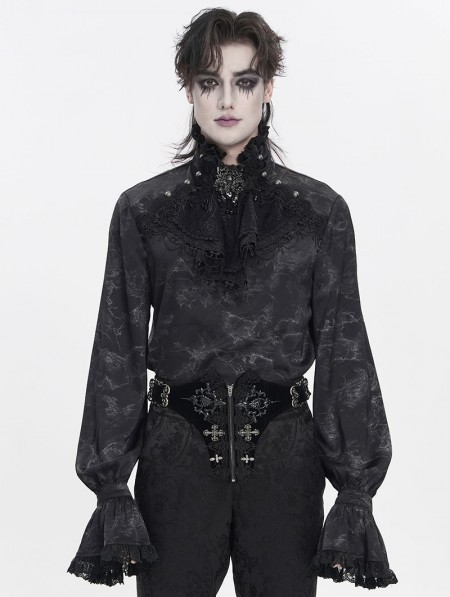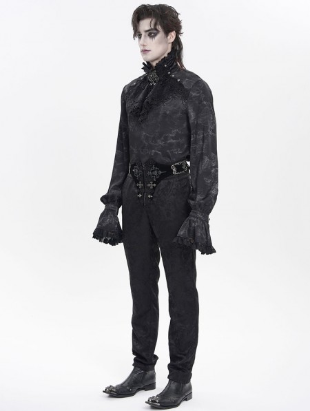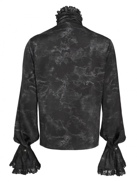 Devil Fashion Black Gothic Victorian Ruffled Stand-Up Collar Shirt for Men