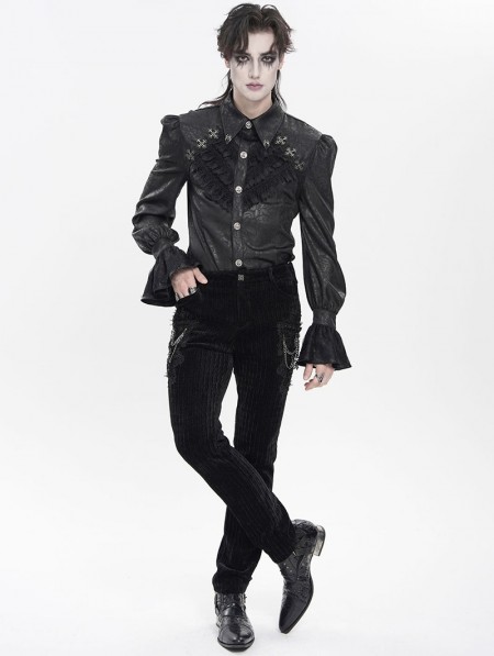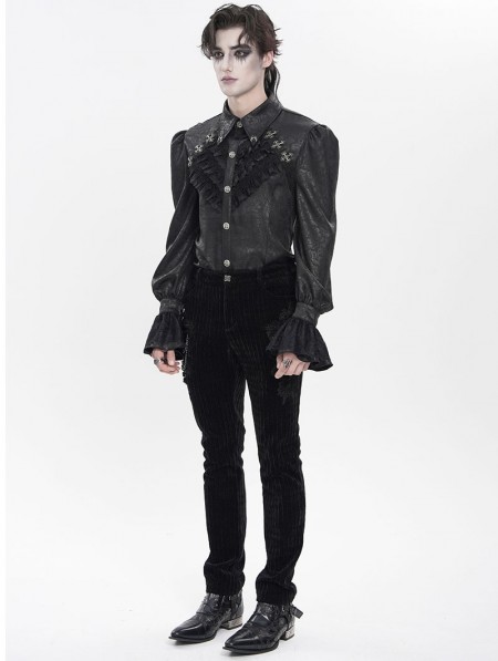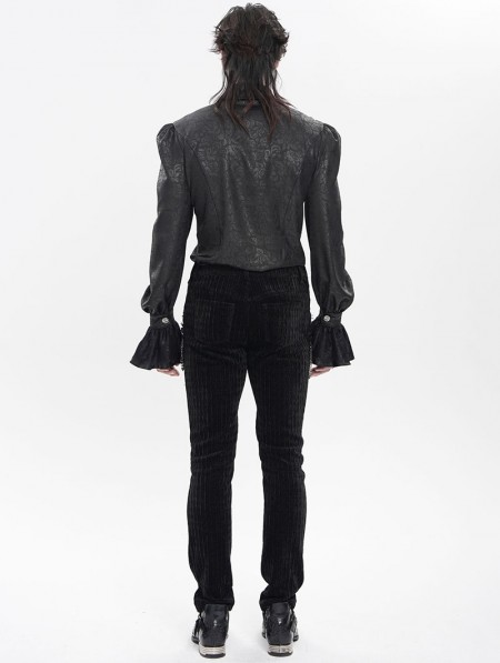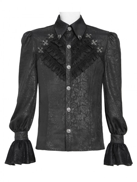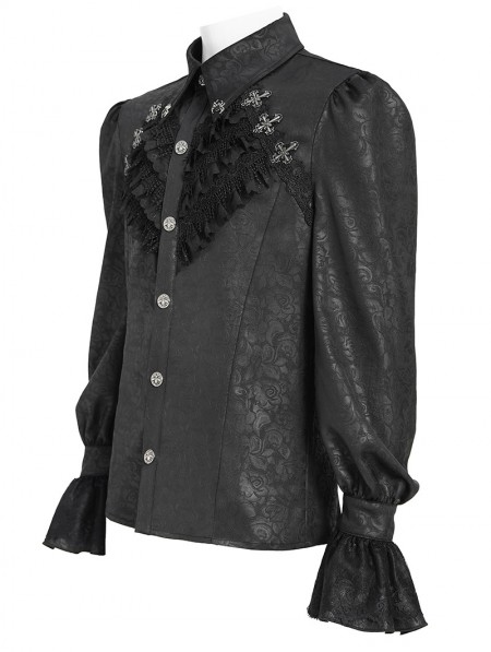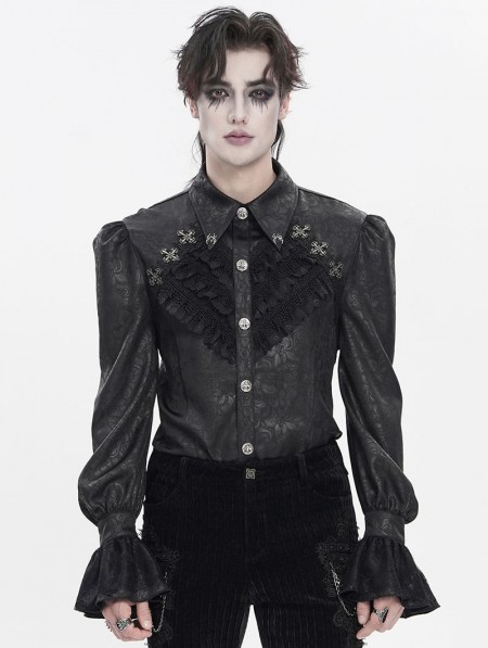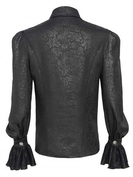 Devil Fashion Black Retro Gothic Floral Embroidery Pattern Shirt for Men