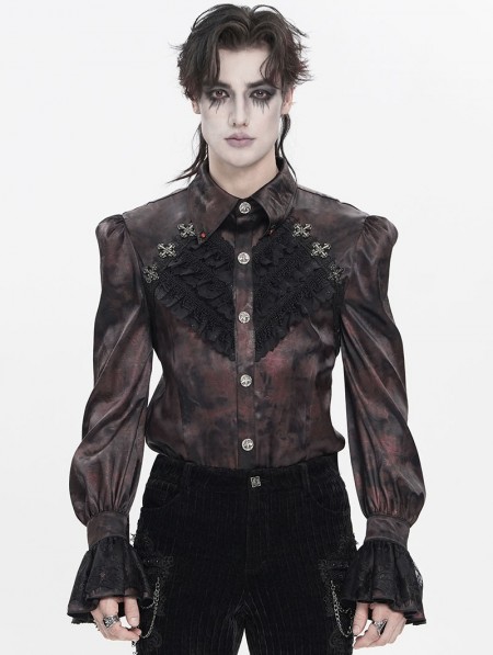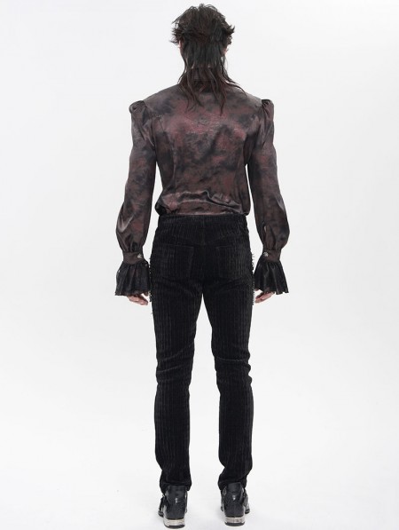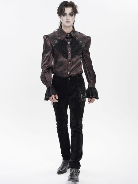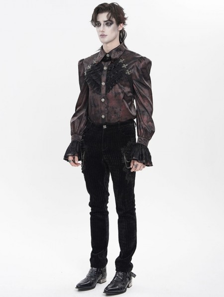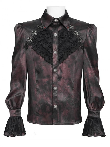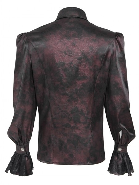 Devil Fashion Burgundy Retro Gothic Floral Embroidery Pattern Shirt for Men