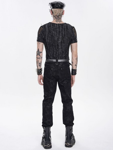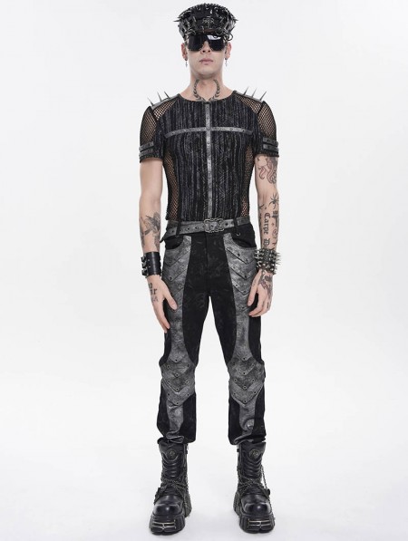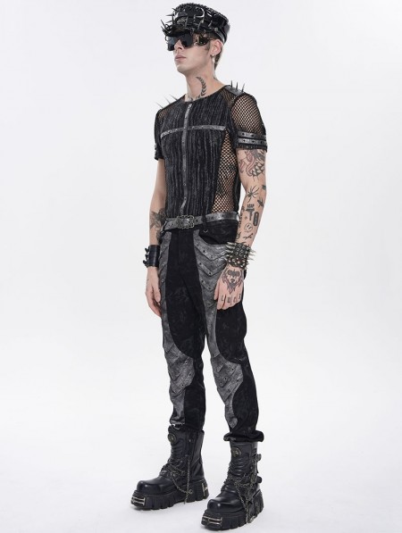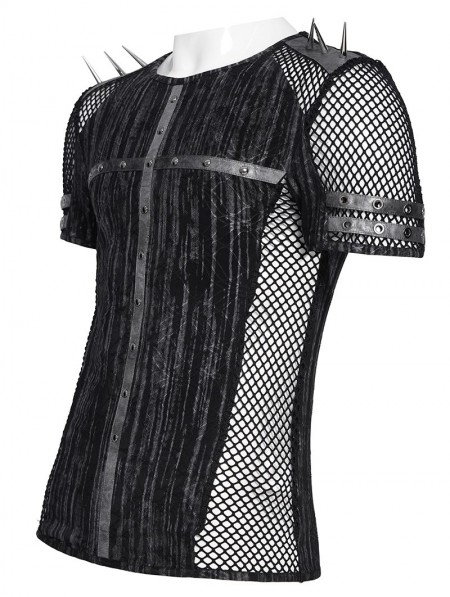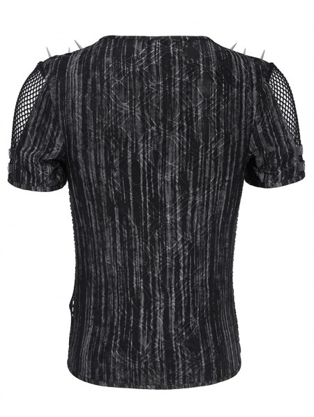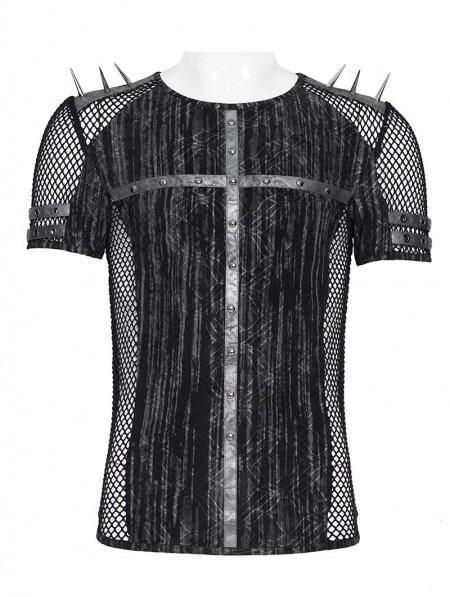 Devil Fashion Black Gothic Punk Spiked Mesh Splice T-shirt for Men