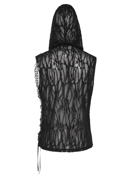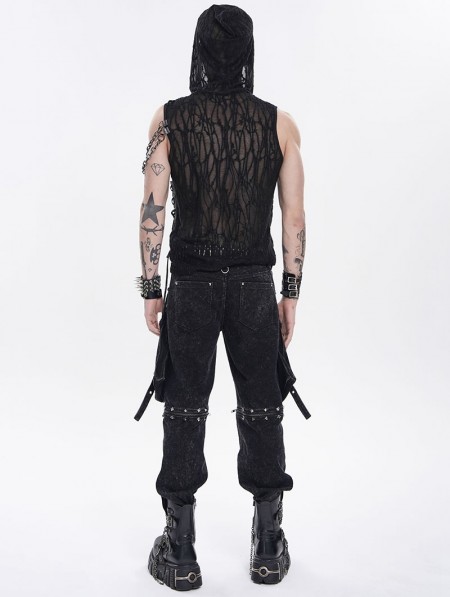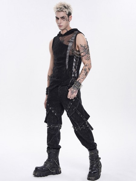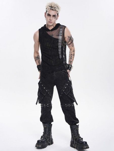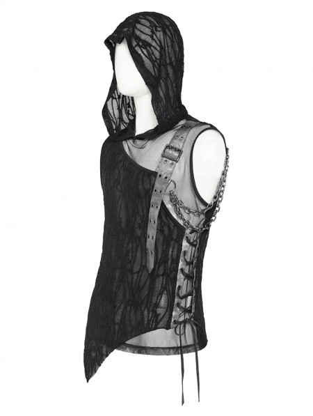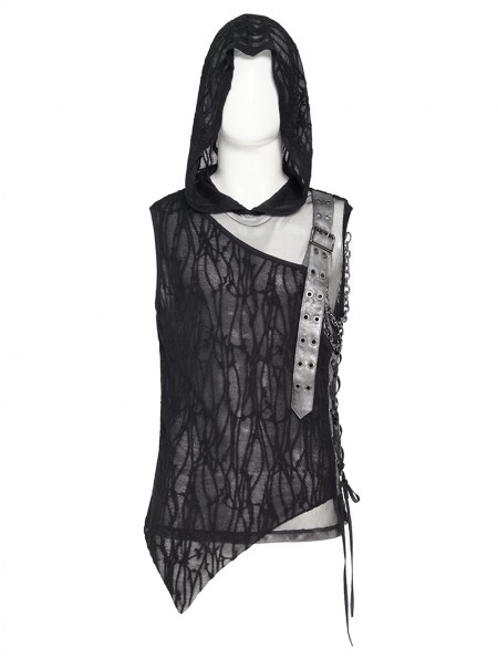 Devil Fashion Black Gothic Punk Hooded Asymmetric Tank Top for Men