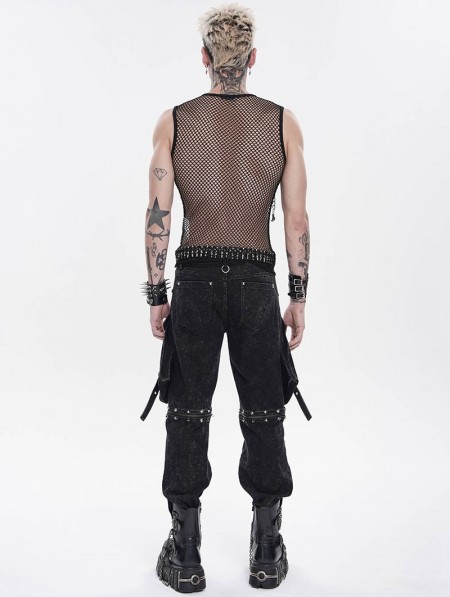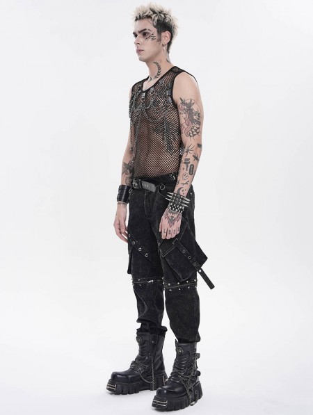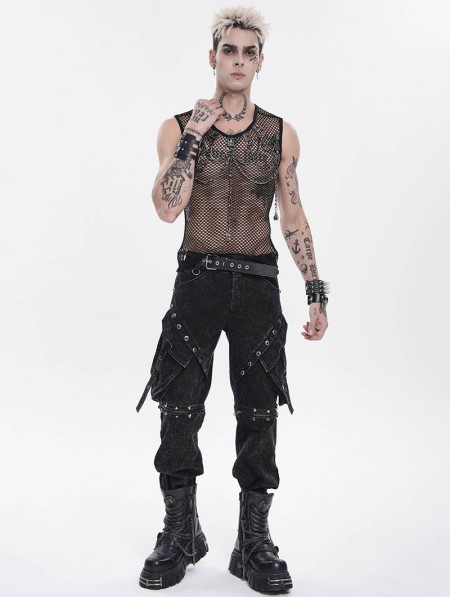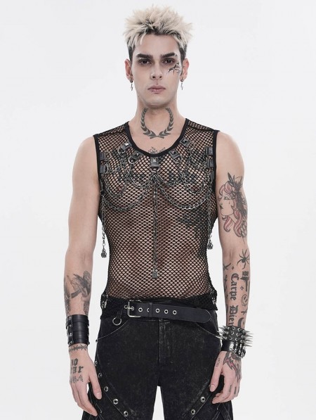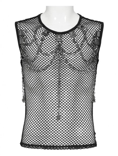 Devil Fashion Black Gothic Punk Mesh Tank Top with Chain