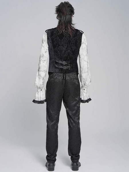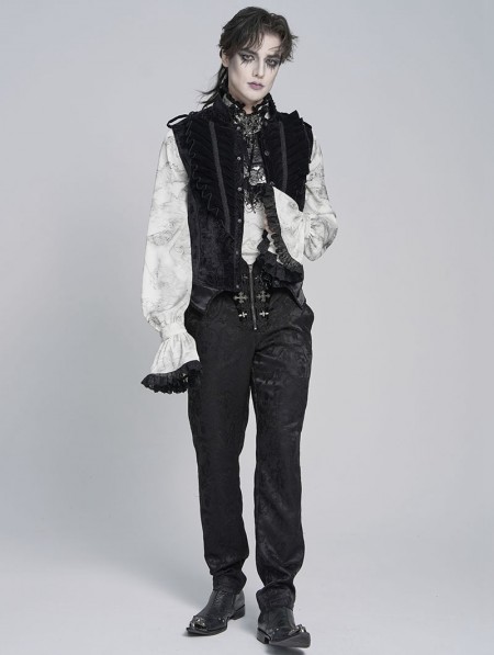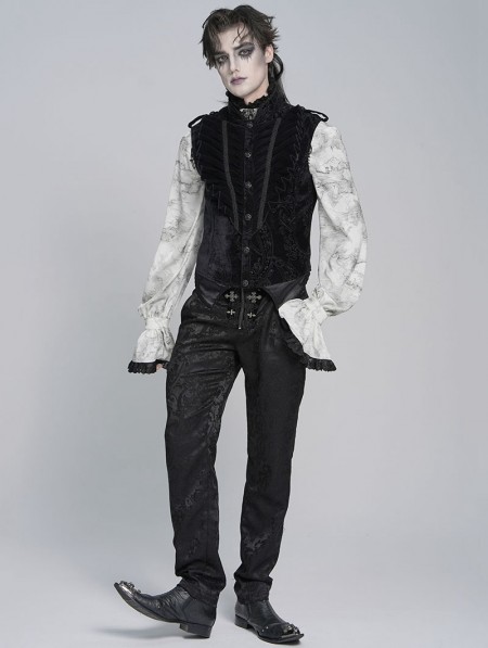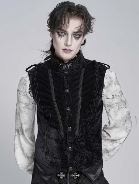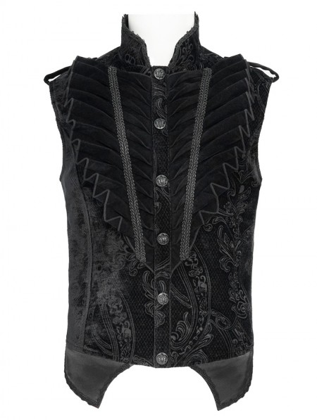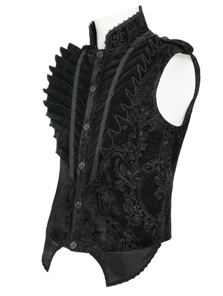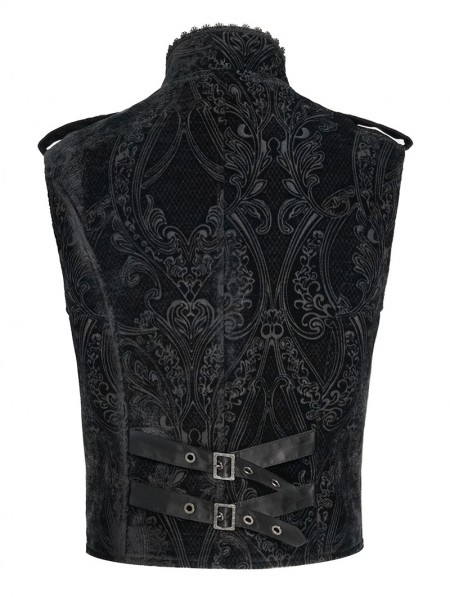 Devil Fashion Black Embossed Velvet Victorian Gothic Waistcoat for Men