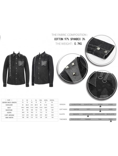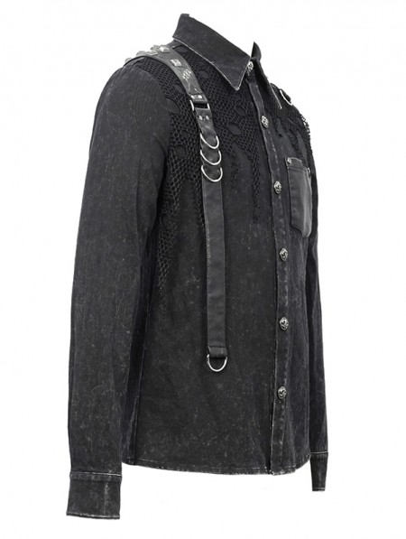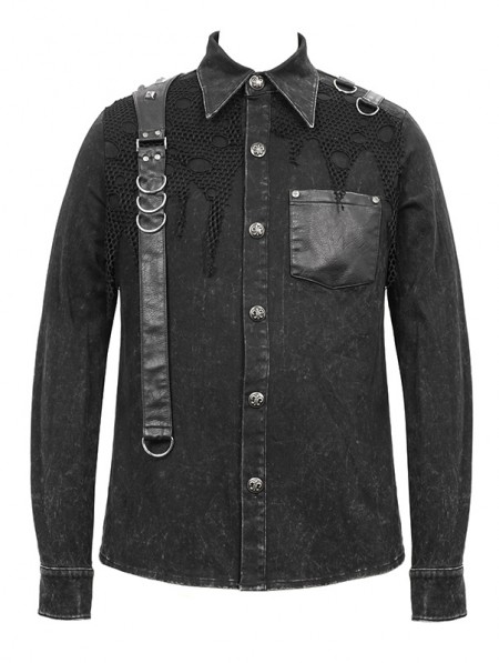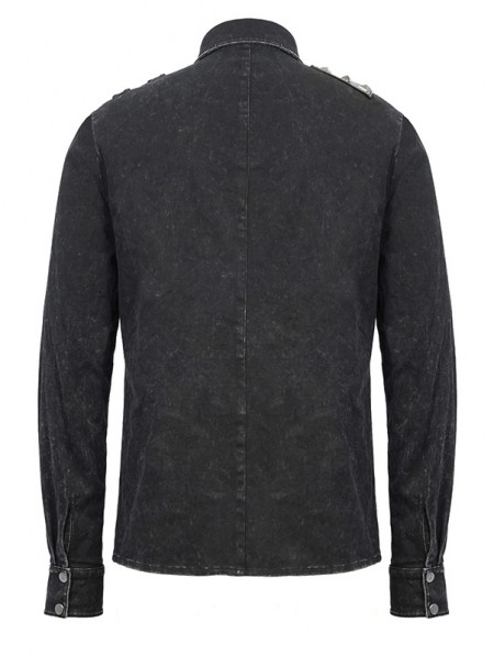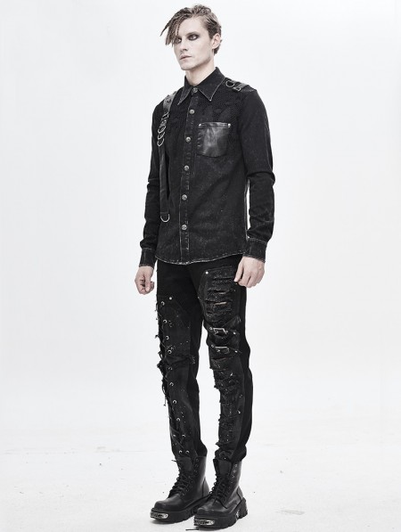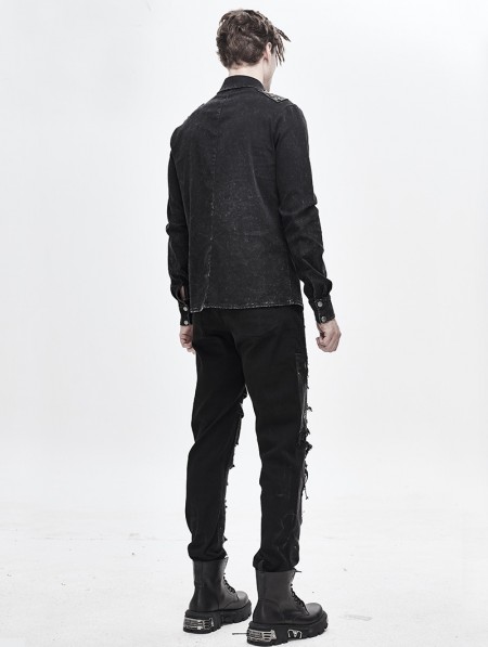 Devil Fashion Black Gothic Punk Do Old Denim Long Sleeve Shirt for Men